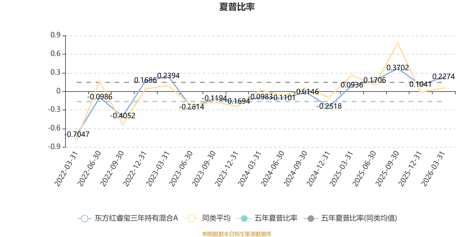 截至3月31日,基金近三年夏普比率为0.2012,位于同类可比基金15/20。