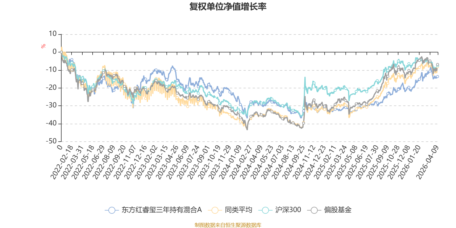 截至4月9日,东方红睿玺三年持有混合A近三个月复权单位净值增长率为3.76%,位于同类可比基金5/20;近半年复权单位净值增长率为7.45%,位于同类可比基金3/20;近一年复权单位净值增长率为31.81%,位于同类可比基金13/20;近三年复权单位净值增长率为-6.59%,位于同类可比基金15/19。