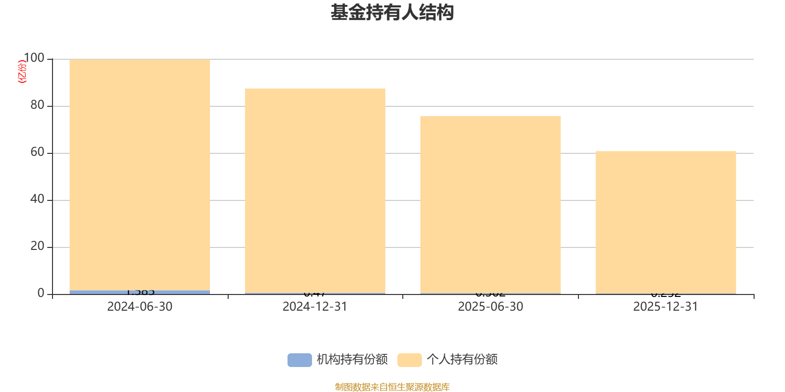 截至2025年12月31日,基金持有人共计18.18万户,合计持有60.73亿份。其中管理人员工持有50.91万份,占比0.01%,机构持有份额占比0.41%,个人投资者占比99.59%。