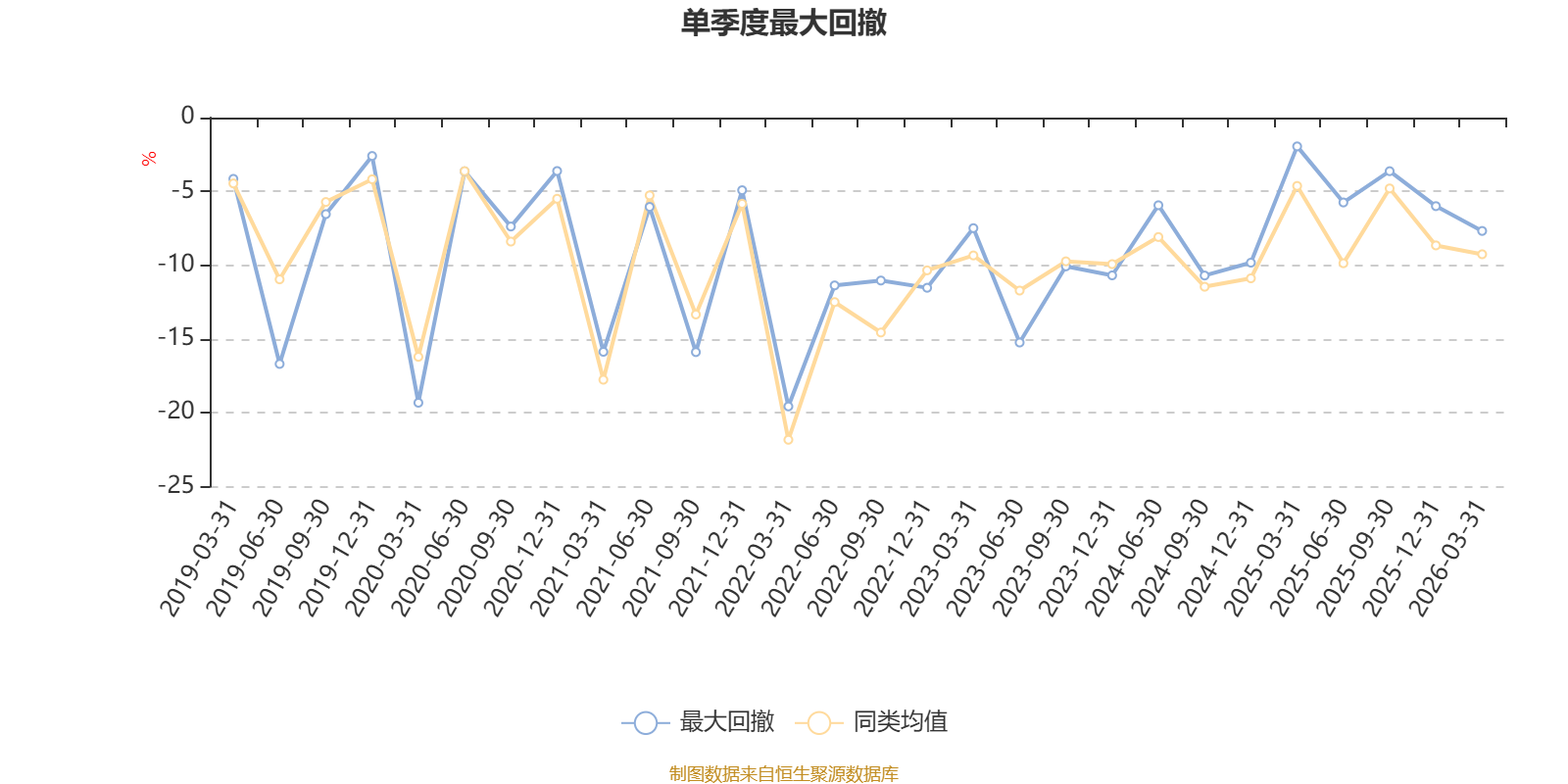截至4月9日,基金近三年最大回撤为31.78%,同类可比基金排名11/20。单季度最大回撤出现在2022年一季度,为19.57%。