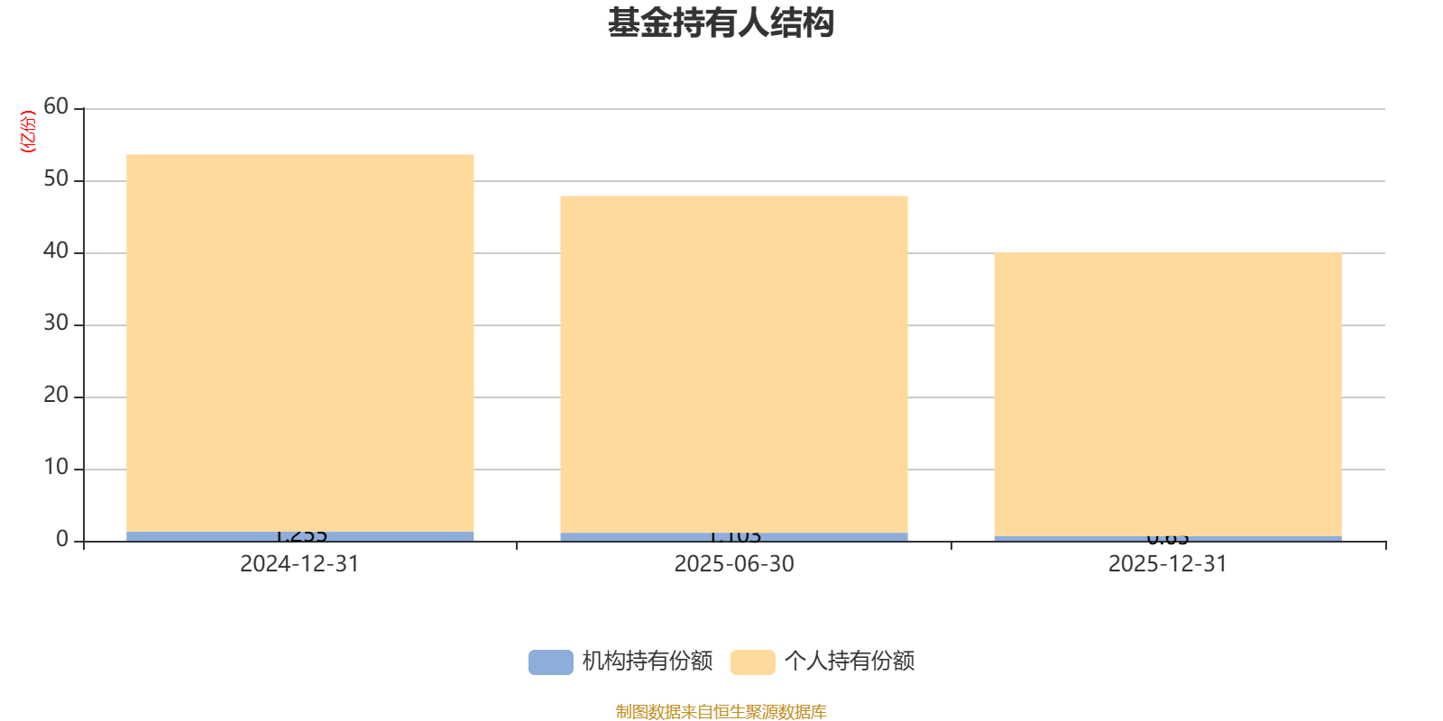 截至2025年12月31日,基金持有人共计23.89万户,合计持有40亿份。其中管理人员工持有277.69万份,占比0.07%,机构持有份额占比1.62%,个人投资者占比98.38%。