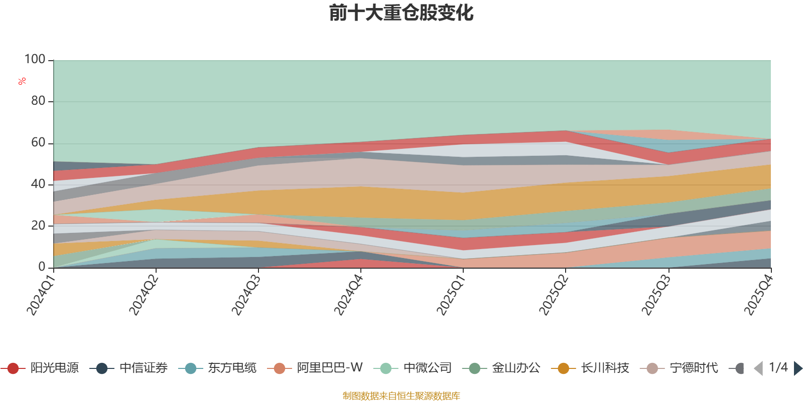 截至2025年末,基金十大重仓股分别是腾讯控股、阿里巴巴-W、立讯精密、恒瑞医药、伊利股份、思源电气、东方电缆、隆基绿能、中信证券、晶晨股份。