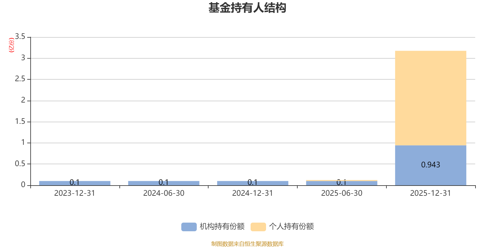 截至2025年12月31日,基金持有人共计5188户,合计持有3.17亿份。其中管理人员工持有156.86万份,占比0.49%,机构持有份额占比29.70%,个人投资者占比70.30%。