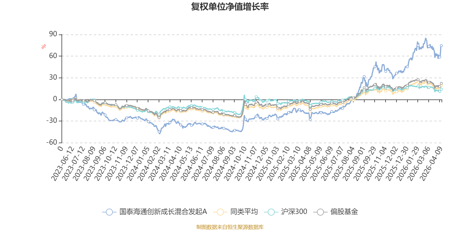 截至4月9日,国泰海通创新成长混合发起A近三个月复权单位净值增长率为11.69%,位于同类可比基金44/689;近半年复权单位净值增长率为14.50%,位于同类可比基金91/689;近一年复权单位净值增长率为133.70%,位于同类可比基金13/685。