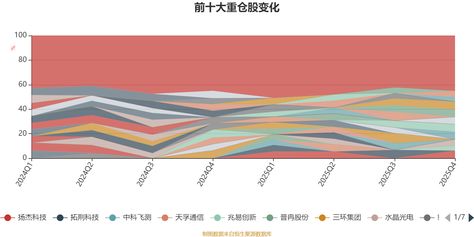 截至2025年末,基金十大重仓股分别是燕东微、纳芯微、扬杰科技、环旭电子、江丰电子、晶晨股份、生益科技、水晶光电、兆易创新、金海通。