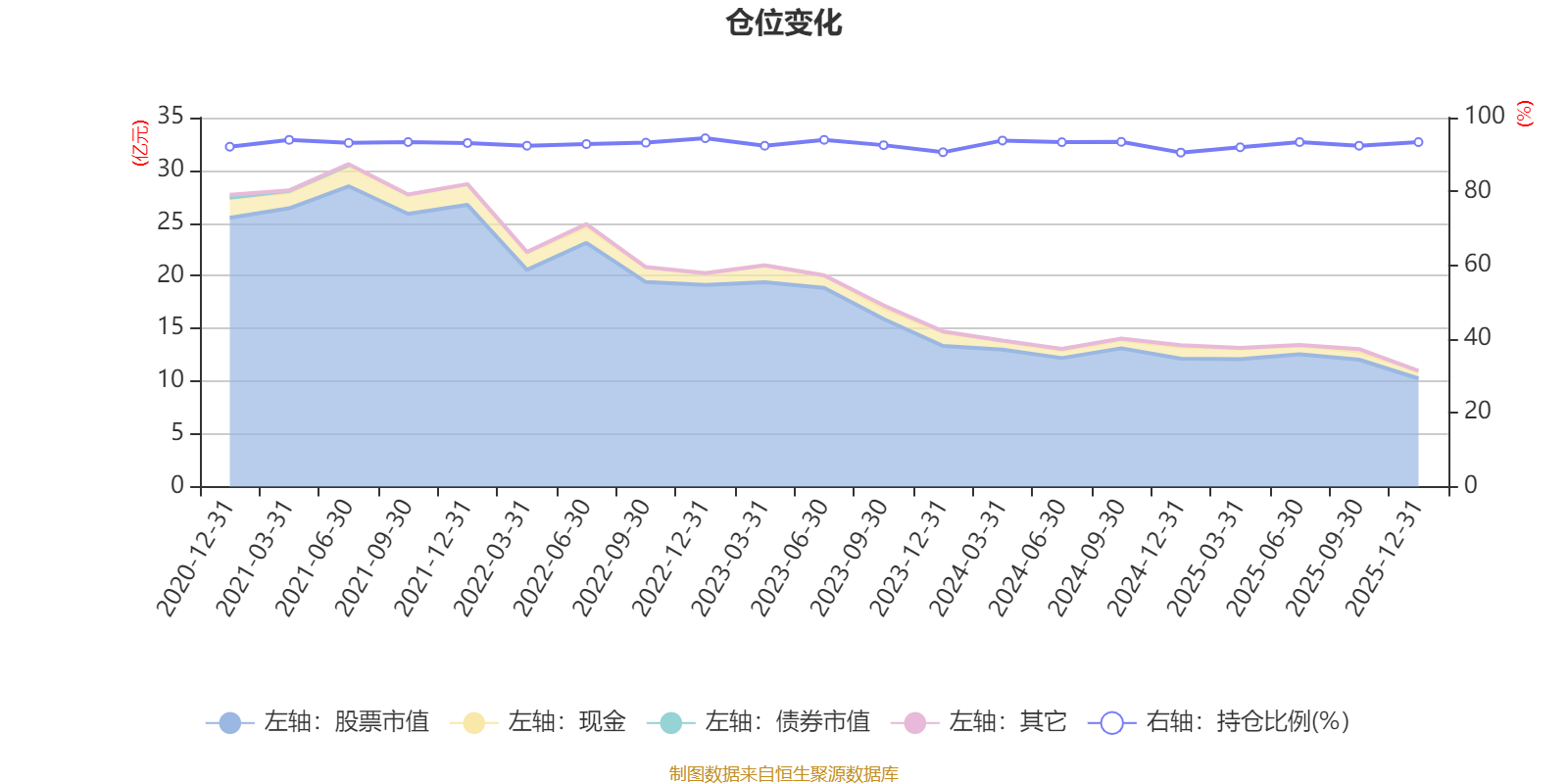 据定期报告数据统计,基金股票仓位长期保持较高水平,近三年平均股票仓位为92.64%,同类平均为86.12%。2022年末基金达到94.4%的最高仓位,2024年末最低,为90.53%。