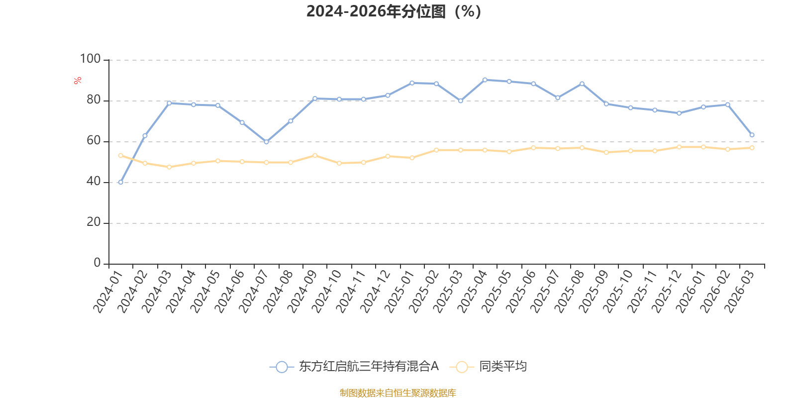 通过所选区间该基金净值增长率分位图,可以观察该基金与同类基金业绩比较情况。图为坐标原点到区间内某时点的净值增长率在同类基金中的分位数。