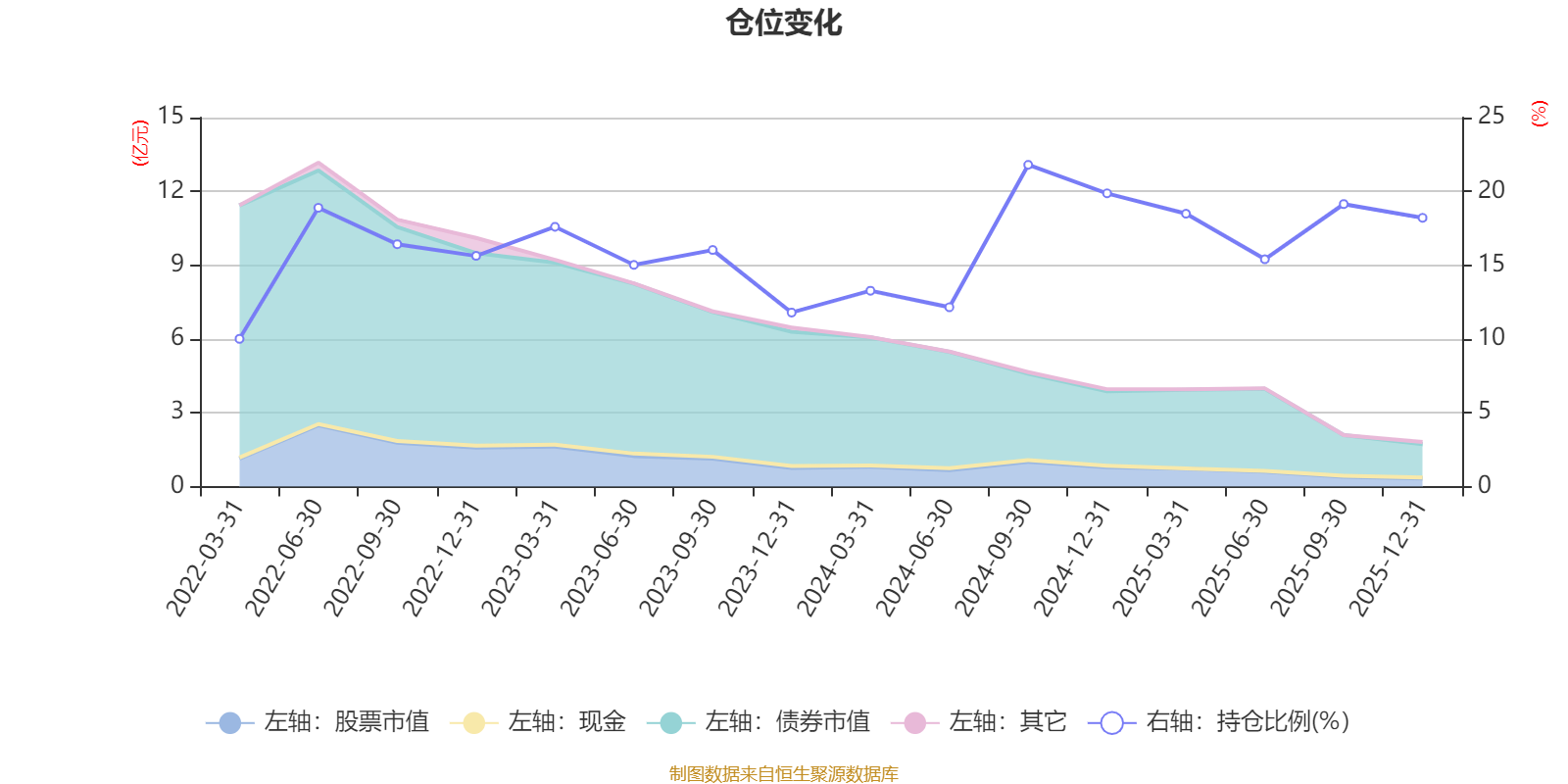 据定期报告数据统计,近三年平均股票仓位为16.56%,同类平均为19.2%。2024年三季度末基金达到21.8%的最高仓位,2022年一季度末最低,为10.01%。