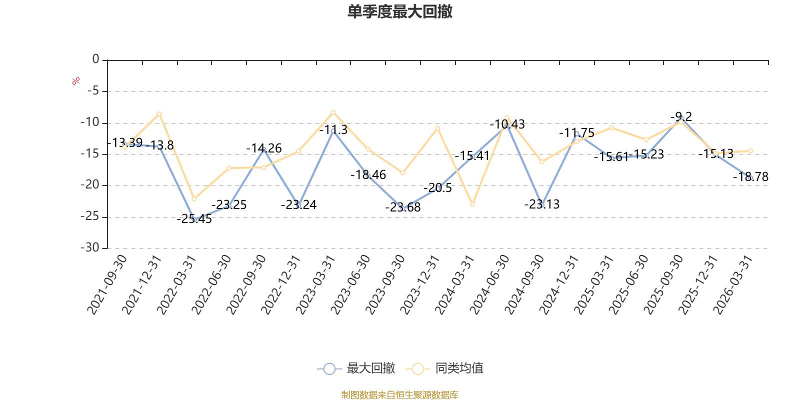 截至4月9日,基金近三年最大回撤为48.82%,同类可比基金排名142/168。单季度最大回撤出现在2022年一季度,为25.45%。