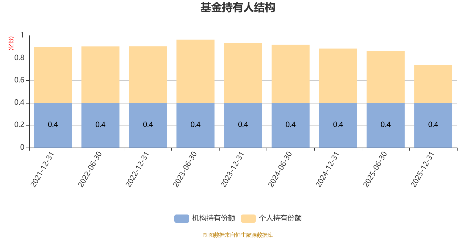 截至2025年12月31日,基金持有人共计1319户,合计持有7378.05万份。其中管理人员工持有9.74万份,占比0.13%,机构持有份额占比54.22%,个人投资者占比45.78%。