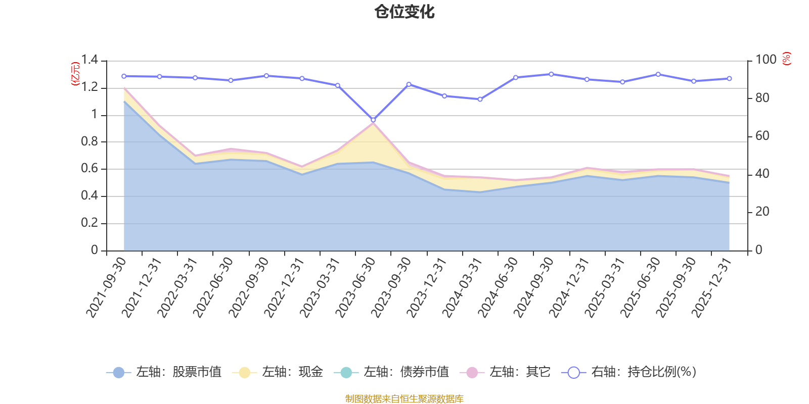 据定期报告数据统计,近三年平均股票仓位为86.64%,同类平均为86.9%。2024年三季度末基金达到92.87%的最高仓位,2023年上半年末最低,为68.8%。