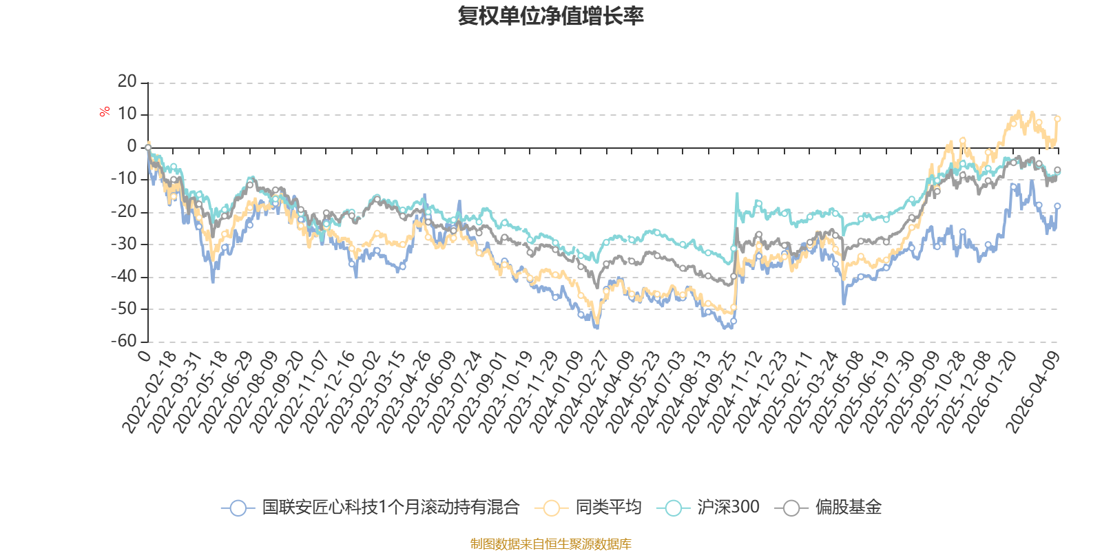 截至4月9日,国联安匠心科技1个月滚动持有混合近三个月复权单位净值增长率为1.64%,位于同类可比基金117/229;近半年复权单位净值增长率为7.66%,位于同类可比基金91/229;近一年复权单位净值增长率为52.93%,位于同类可比基金148/229;近三年复权单位净值增长率为3.37%,位于同类可比基金151/171。