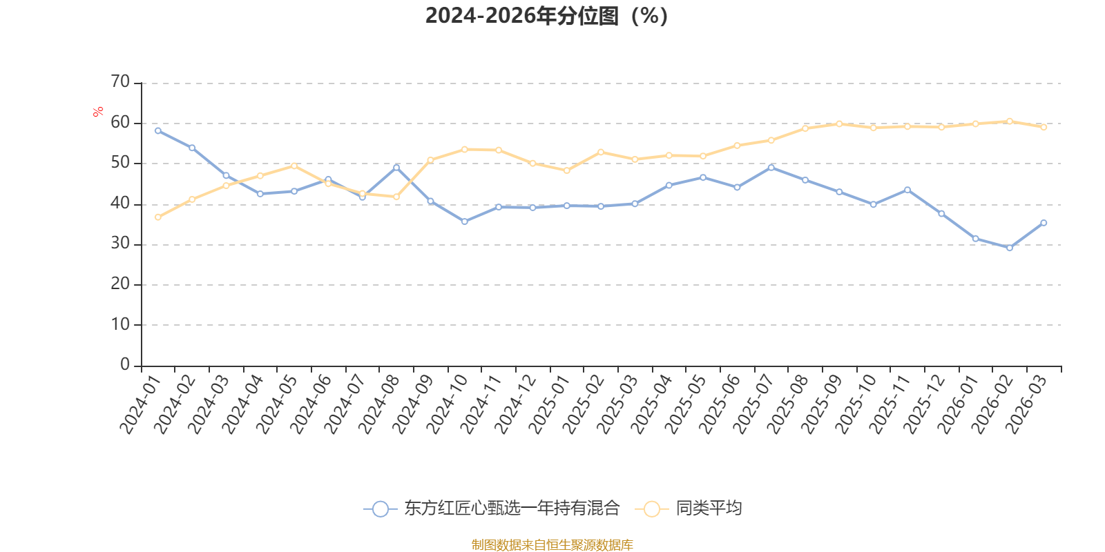 通过所选区间该基金净值增长率分位图,可以观察该基金与同类基金业绩比较情况。图为坐标原点到区间内某时点的净值增长率在同类基金中的分位数。