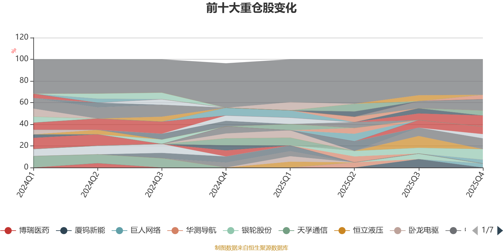 该基金持股集中度较高。截至2025年末,基金十大重仓股分别是中际旭创、新易盛、寒武纪、永鼎股份、工业富联、华锐精密、生益科技、东山精密、巨人网络、金诚信。