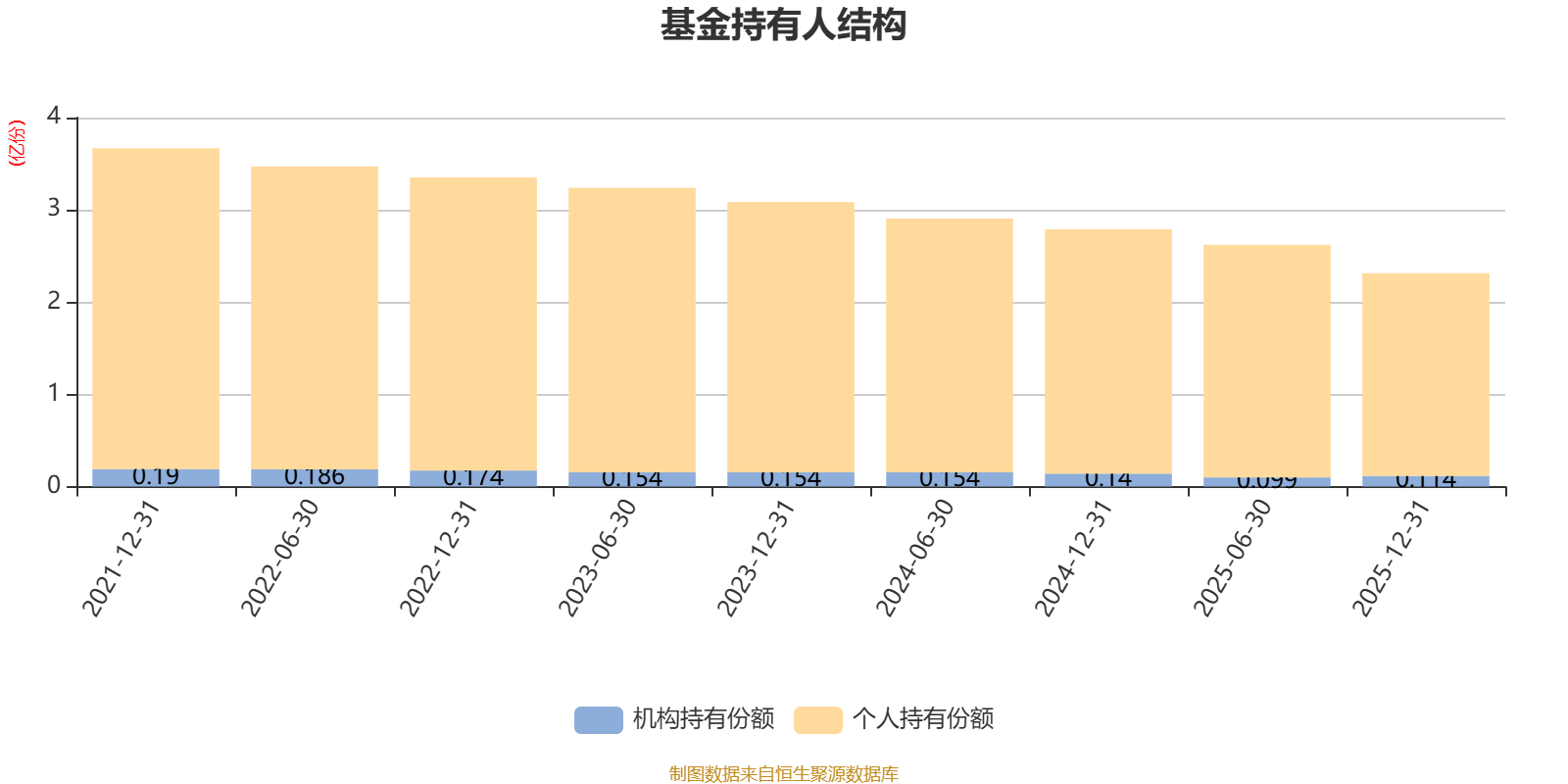 截至2025年12月31日,基金持有人共计3959户,合计持有2.31亿份。其中管理人员工持有20.33万份,占比0.09%,机构持有份额占比4.92%,个人投资者占比95.08%。