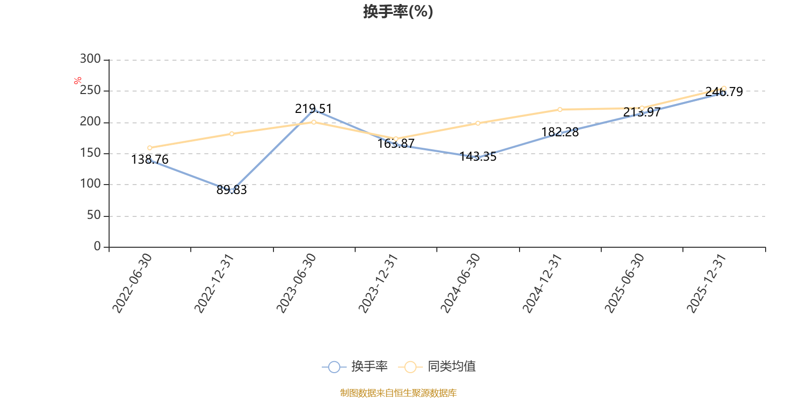 截至2025年12月31日,基金最近一年换手率约466.62%,持续2年低于同类均值。