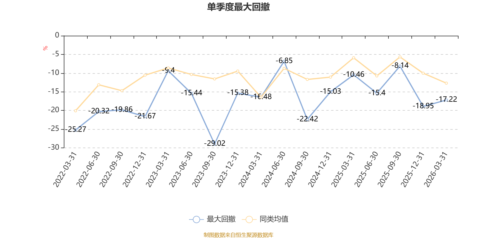 截至4月9日,基金近三年最大回撤为49.56%,同类可比基金排名534/549。单季度最大回撤出现在2023年三季度,为29.02%。