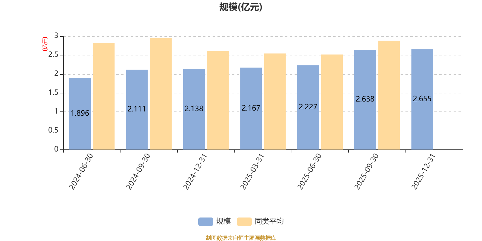 截至2025年12月31日,基金持有人共计2106户,合计持有1.88亿份。其中管理人员工持有2795.3万份,占比14.84%,机构持有份额占比24.61%,个人投资者占比75.39%。