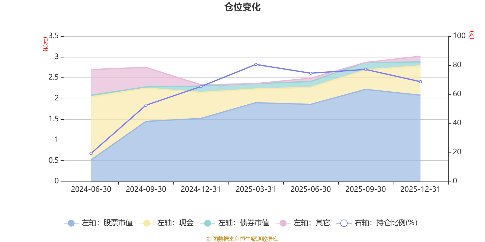据定期报告数据统计,成立以来平均股票仓位为62.63%,同类平均为85.83%。2025年一季度末基金达到80.62%的最高仓位,2024年上半年末最低,为19.39%。