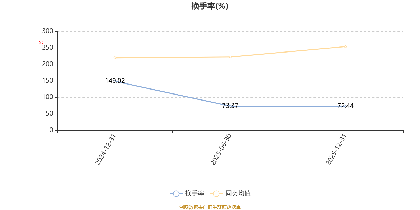 截至2025年12月31日,基金最近一年换手率约145.06%,持续低于同类均值。