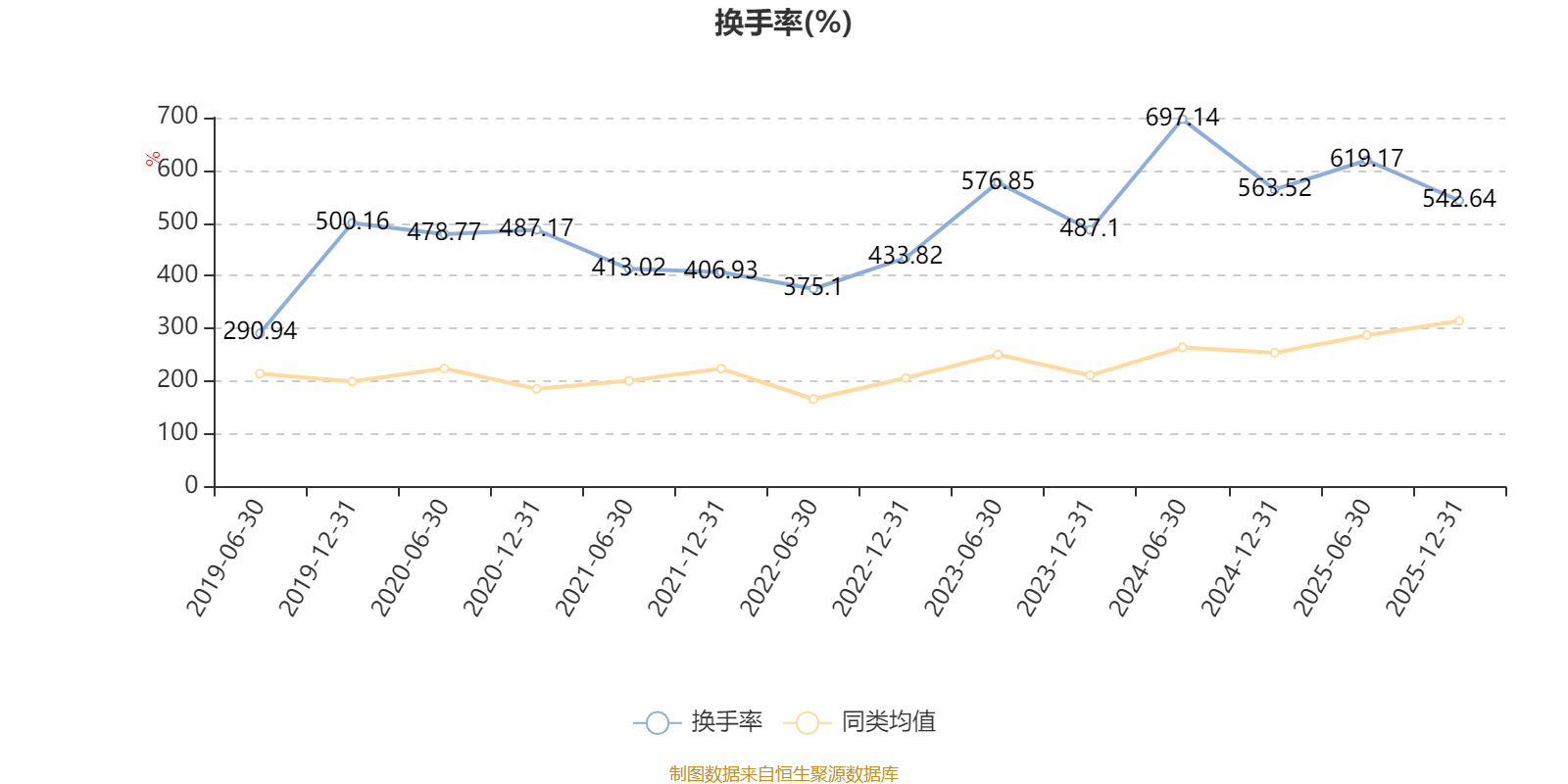 截至2025年12月31日,基金最近一年换手率约1196.53%,持续高于同类均值。