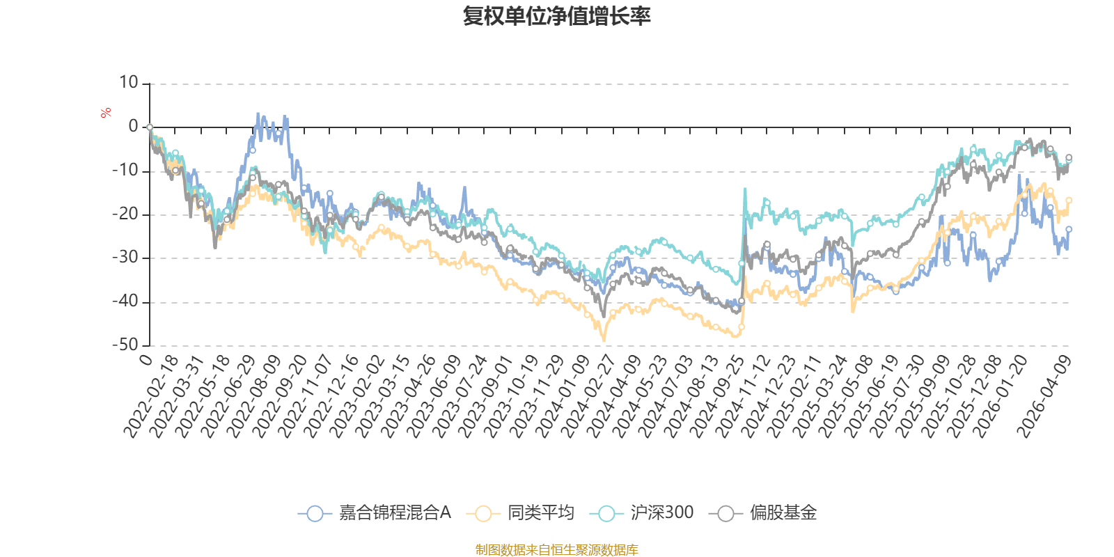 截至4月9日,嘉合锦程混合A近三个月复权单位净值增长率为-8.87%,位于同类可比基金599/689;近半年复权单位净值增长率为1.51%,位于同类可比基金358/689;近一年复权单位净值增长率为23.12%,位于同类可比基金489/685;近三年复权单位净值增长率为-11.76%,位于同类可比基金351/417。