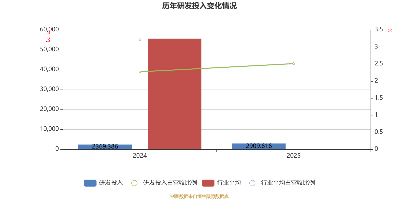 2025年全年,公司研发投入金额为2909.62万元,同比增长22.8%;研发投入占营业收入比例为2.51%,相比上年同期上升0.24个百分点。此外,公司全年研发投入资本化率为0%。