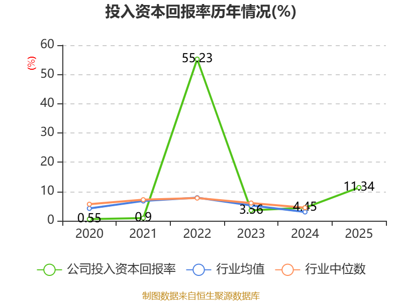 数据显示,2025年公司加权平均净资产收益率为14.51%,较上年同期上升14.16个百分点。公司2025年投入资本回报率为11.34%,较上年同期上升6.89个百分点。