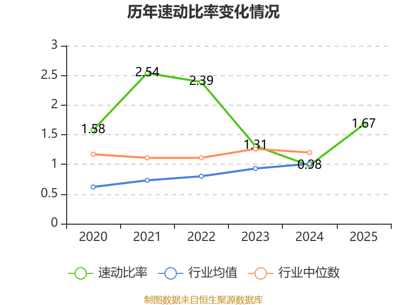 2025年,公司流动比率为2.05,速动比率为1.67。