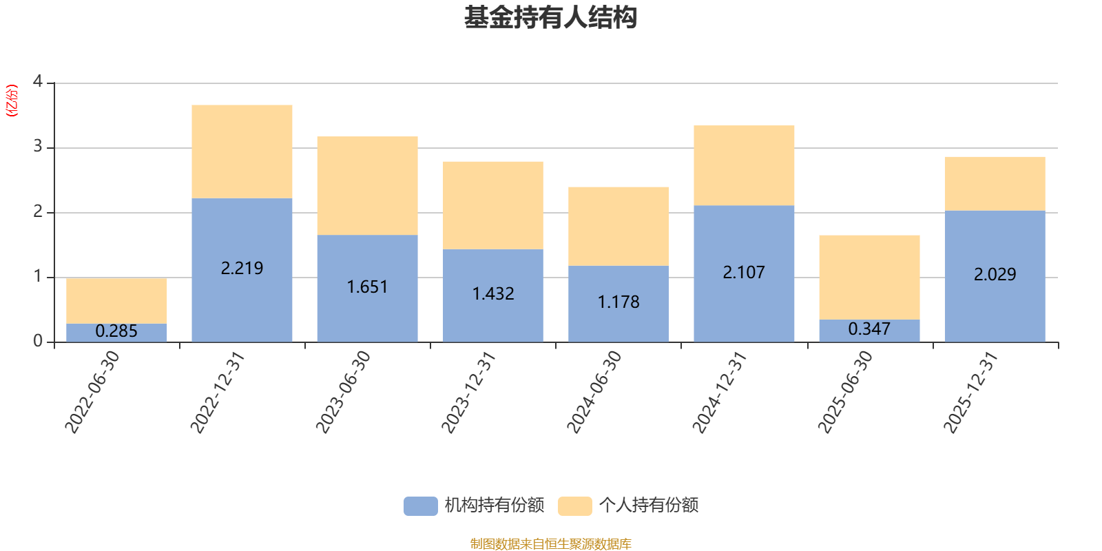 截至2025年12月31日,基金持有人共计7190户,合计持有2.85亿份。其中管理人员工持有188万份,占比0.66%,机构持有份额占比71.09%,个人投资者占比28.91%。