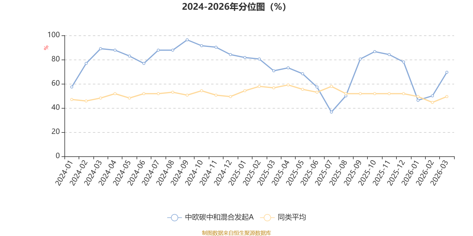 通过所选区间该基金净值增长率分位图,可以观察该基金与同类基金业绩比较情况。图为坐标原点到区间内某时点的净值增长率在同类基金中的分位数。