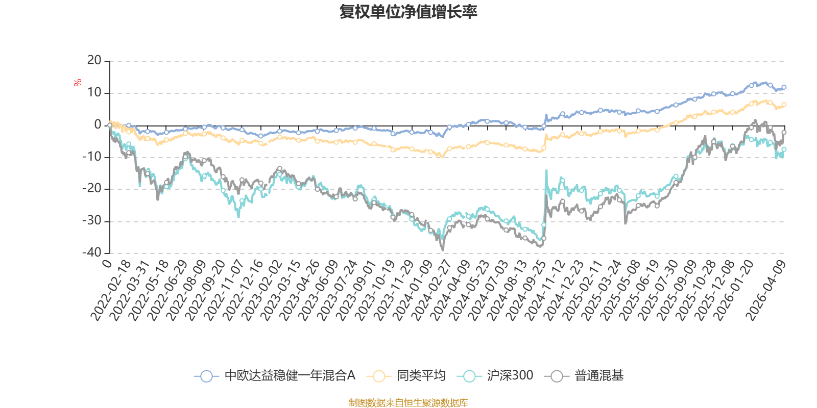 截至4月9日,中欧达益稳健一年混合A近三个月复权单位净值增长率为0.03%,位于同类可比基金336/629;近半年复权单位净值增长率为1.64%,位于同类可比基金229/629;近一年复权单位净值增长率为8.09%,位于同类可比基金260/629;近三年复权单位净值增长率为13.95%,位于同类可比基金186/581。