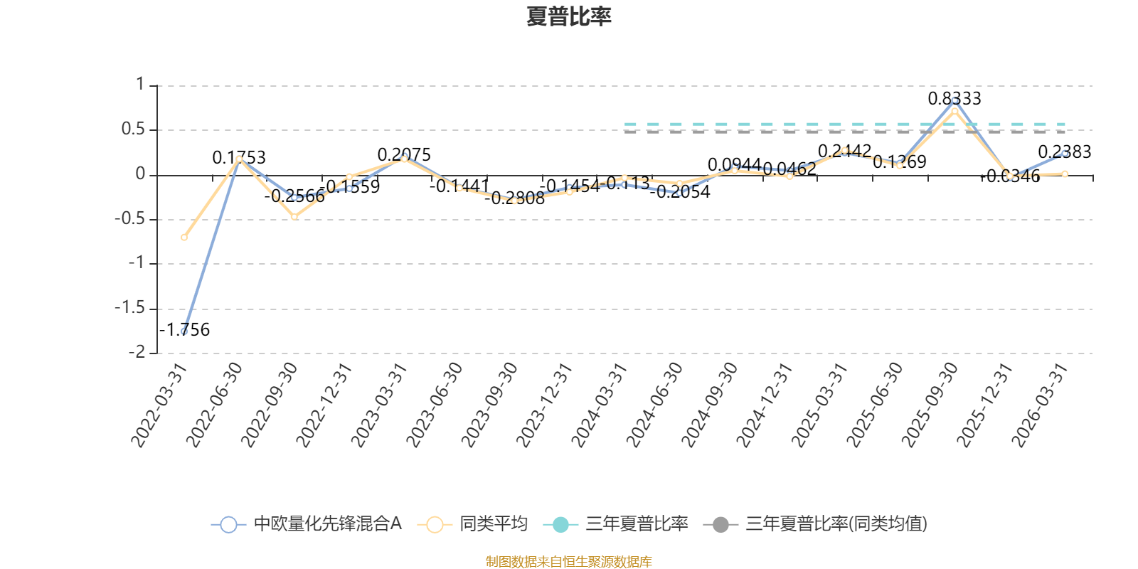 截至3月31日,基金近三年夏普比率为0.5629,位于同类可比基金234/550。