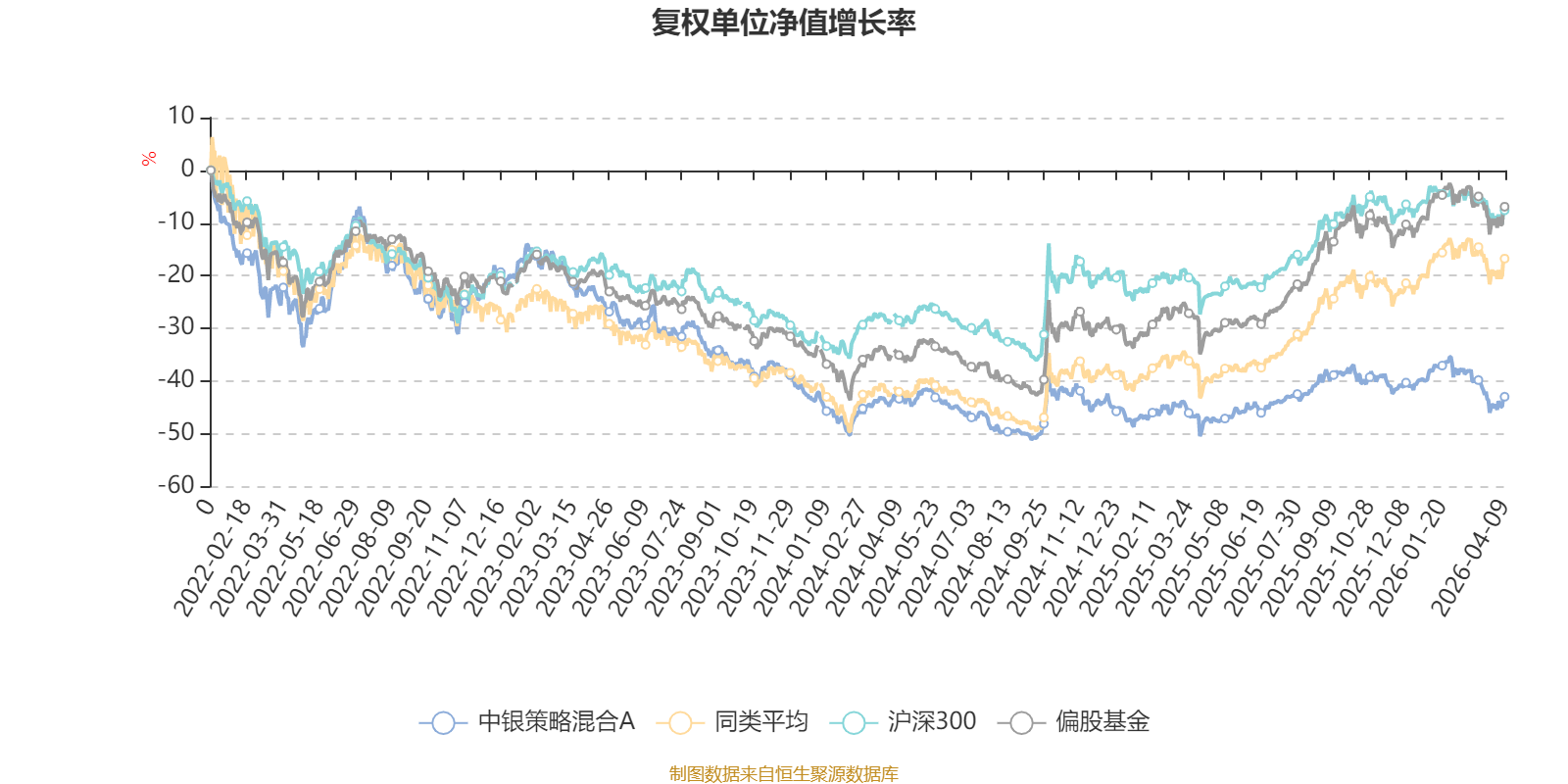 截至4月9日,中银策略混合A近三个月复权单位净值增长率为-8.58%,位于同类可比基金548/621;近半年复权单位净值增长率为-9.60%,位于同类可比基金538/621;近一年复权单位净值增长率为11.38%,位于同类可比基金557/618;近三年复权单位净值增长率为-26.98%,位于同类可比基金548/559。