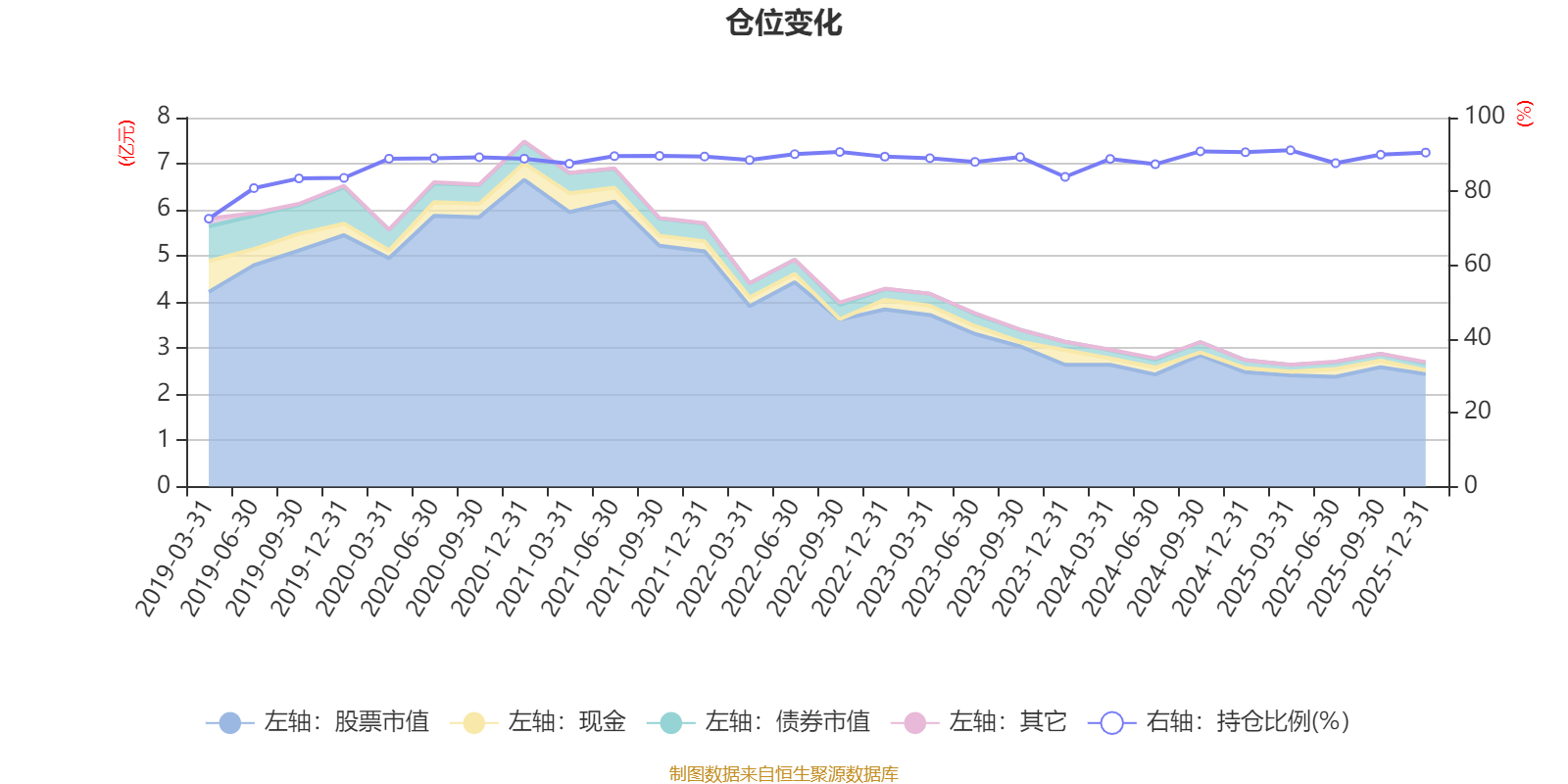 据定期报告数据统计,近三年平均股票仓位为88.93%,同类平均为85.83%。2025年一季度末基金达到91.14%的最高仓位,2019年一季度末最低,为72.59%。