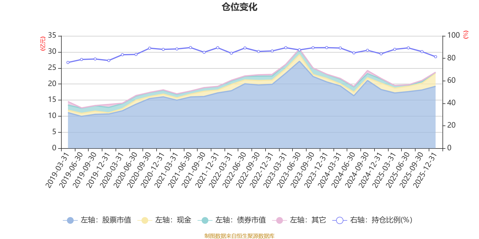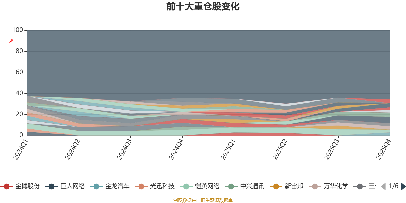 截至2025年末,基金十大重仓股分别是华新建材、环旭电子、菲利华、中材科技、万华化学、金龙汽车、三一重工、恺英网络、精工钢构、中国平安。