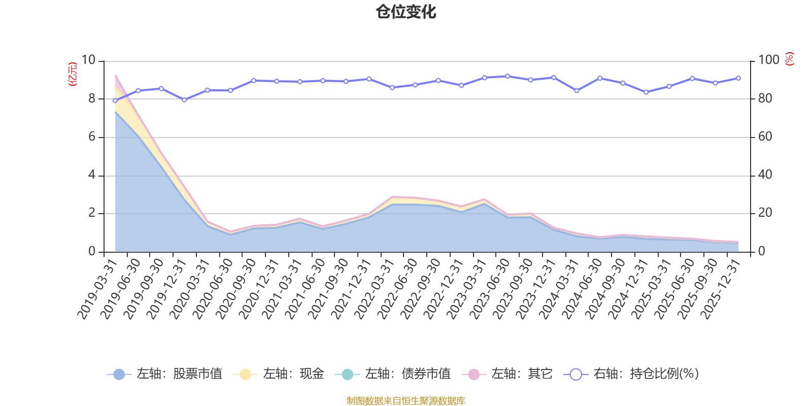 据定期报告数据统计,近三年平均股票仓位为89.08%,同类平均为84.04%。2023年上半年末基金达到91.99%的最高仓位,2019年一季度末最低,为79.27%。