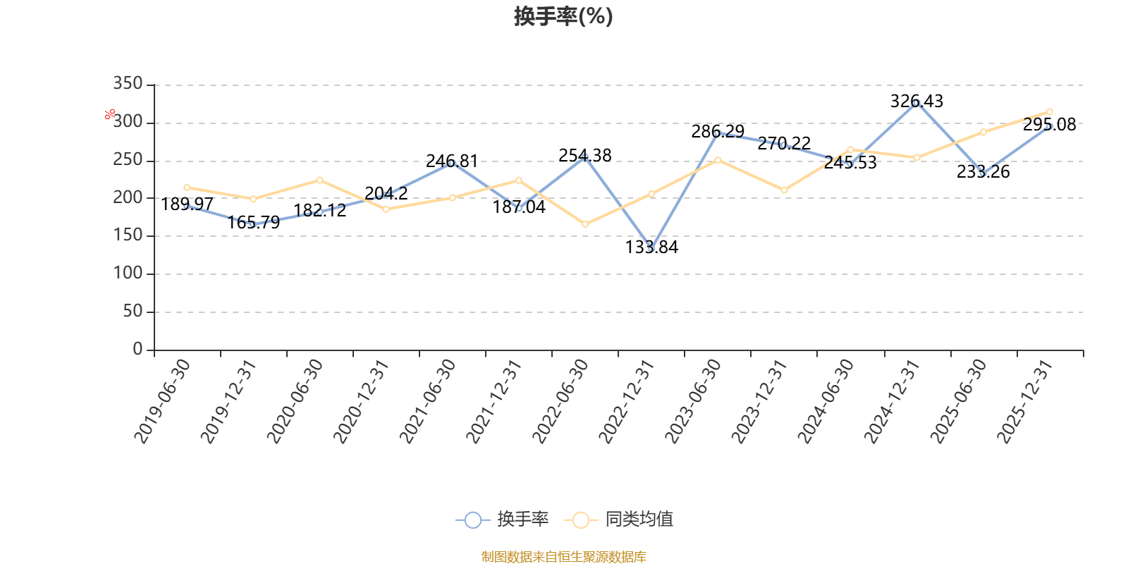 截至2025年12月31日,基金最近一年换手率约529.44%,持续1年低于同类均值。