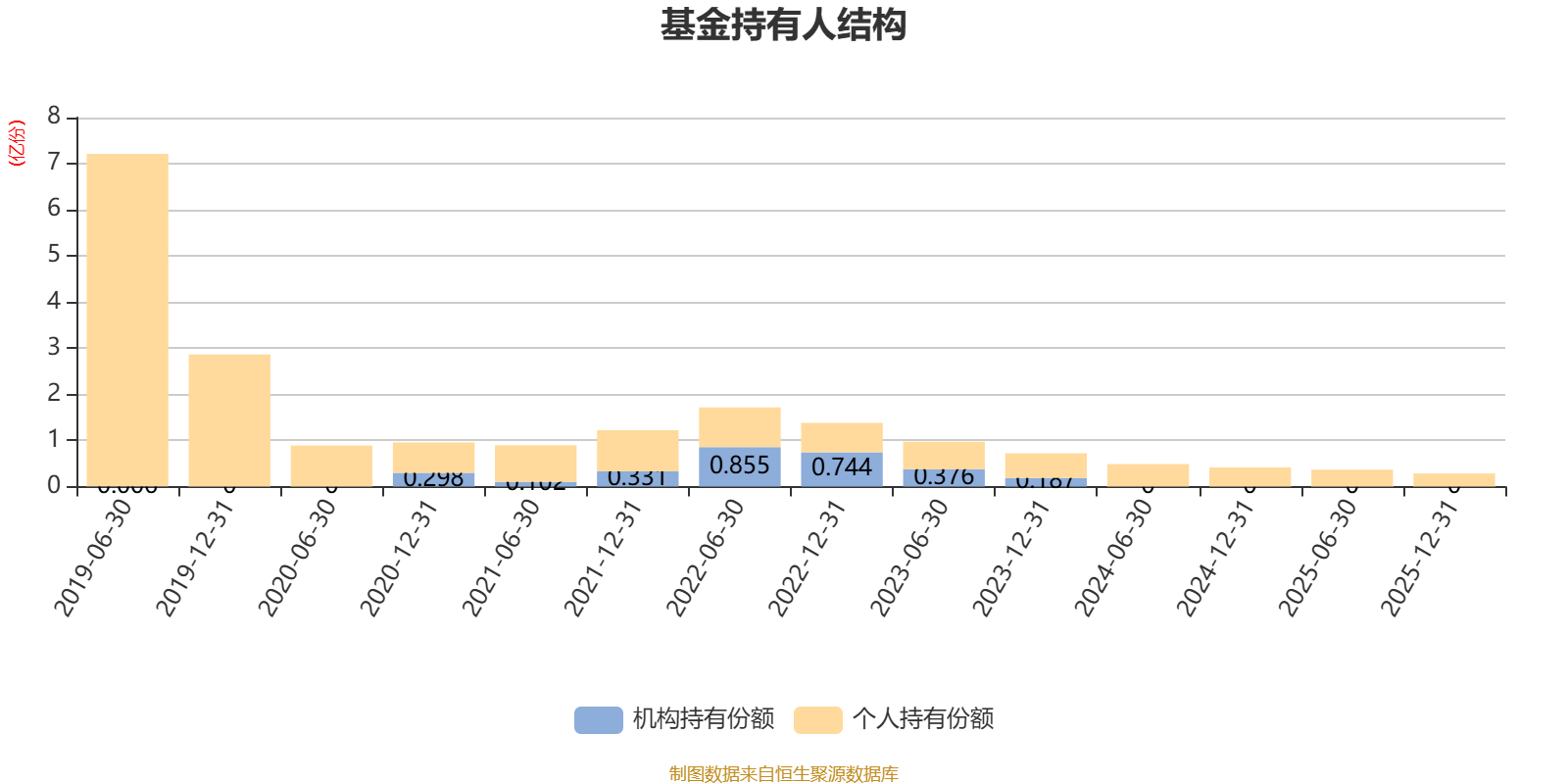 截至2025年12月31日,基金持有人共计1.28万户,合计持有2827.4万份。其中管理人员工持有6.17万份,占比0.22%,机构持有份额占比0.00%,个人投资者占比100.00%。