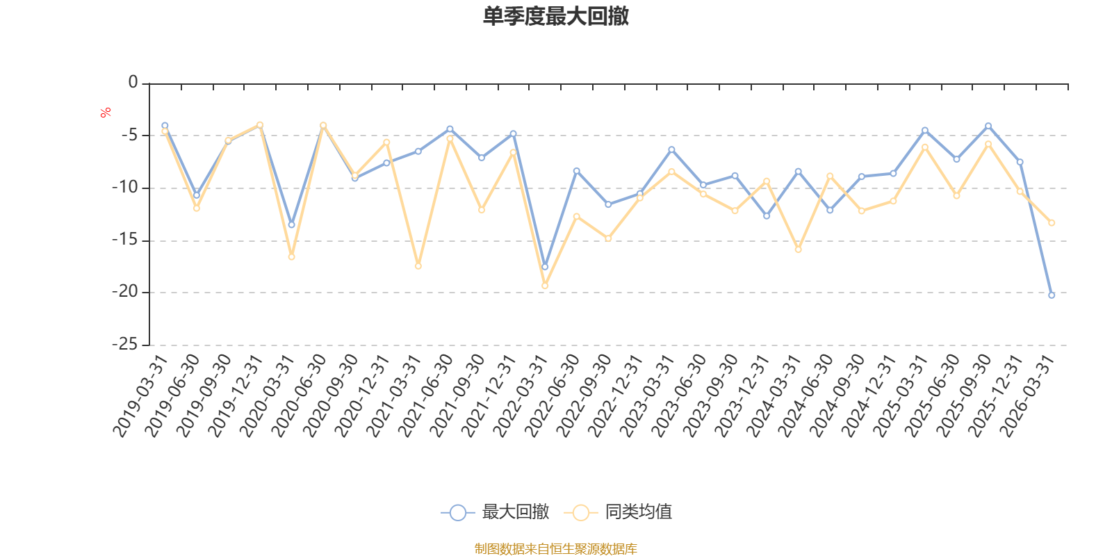截至4月9日,基金近三年最大回撤为26.86%,同类可比基金排名91/392。单季度最大回撤出现在2026年一季度,为20.24%。