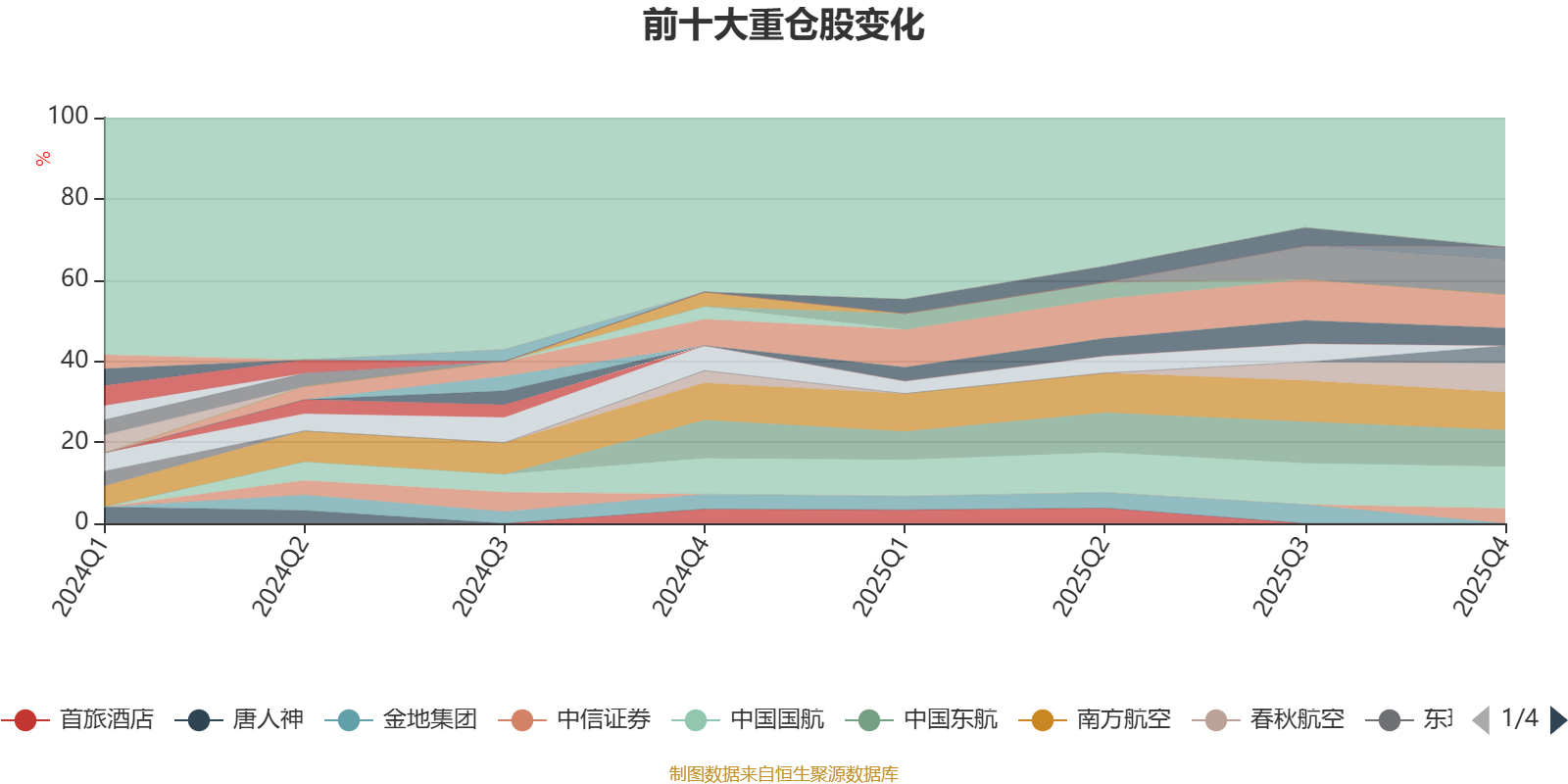 截至2025年末,基金十大重仓股分别是中国国航、南方航空、中国东航、天康生物、吉祥航空、春秋航空、华夏航空、东方证券、中信证券、国泰海通。
