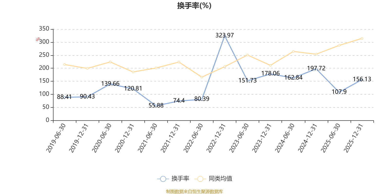 截至2025年12月31日,基金最近一年换手率约265.13%,持续3年低于同类均值。