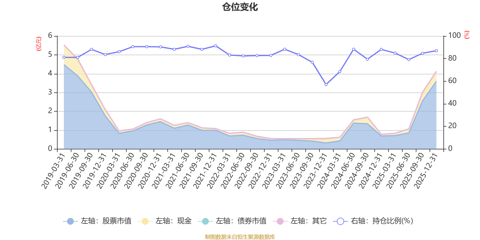 据定期报告数据统计,近三年平均股票仓位为80.48%,同类平均为84.04%。2021年末基金达到91.31%的最高仓位,2023年末最低,为57.06%。