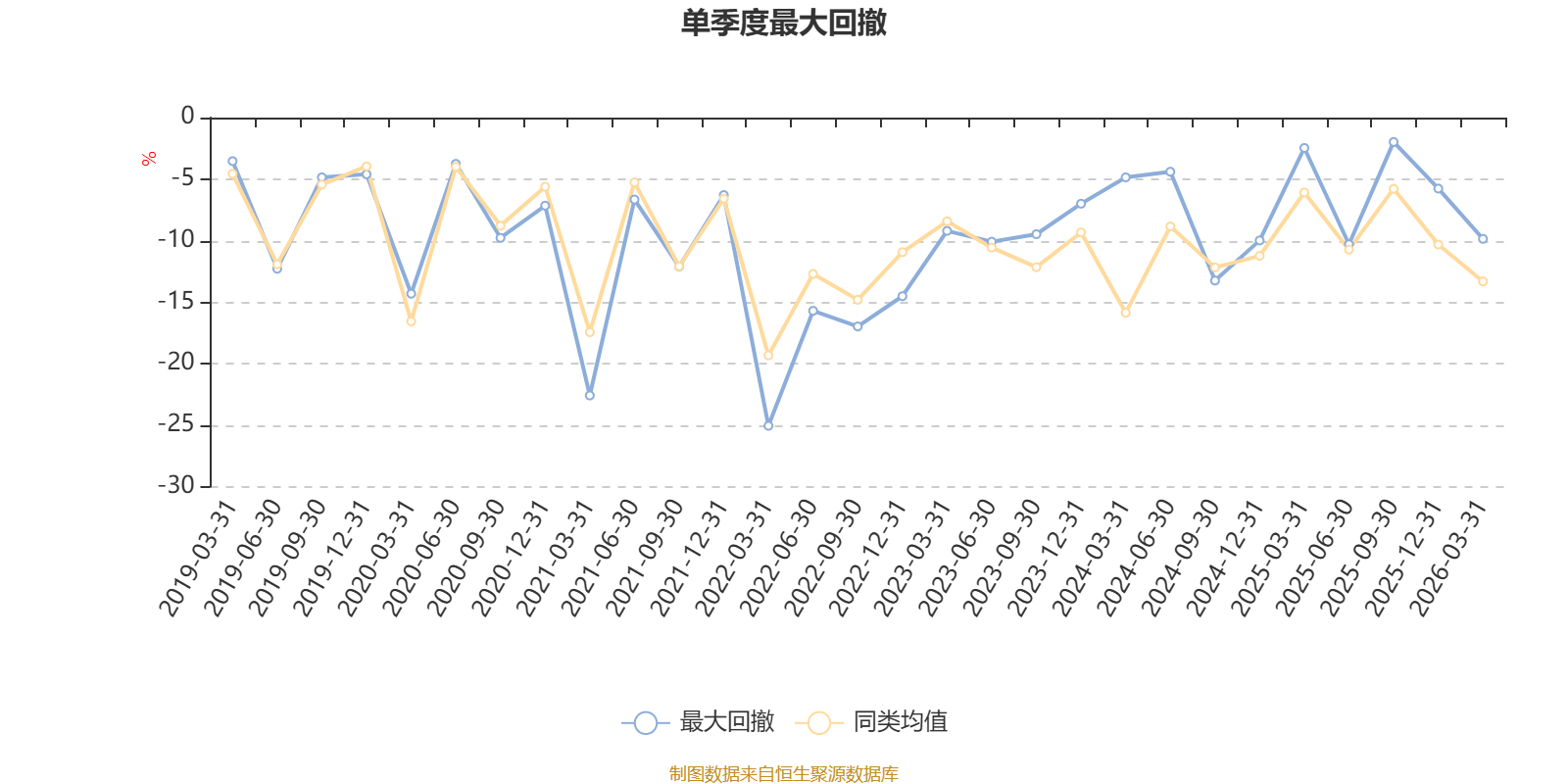 截至4月9日,基金近三年最大回撤为19.1%,同类可比基金排名25/392。单季度最大回撤出现在2022年一季度,为25.06%。