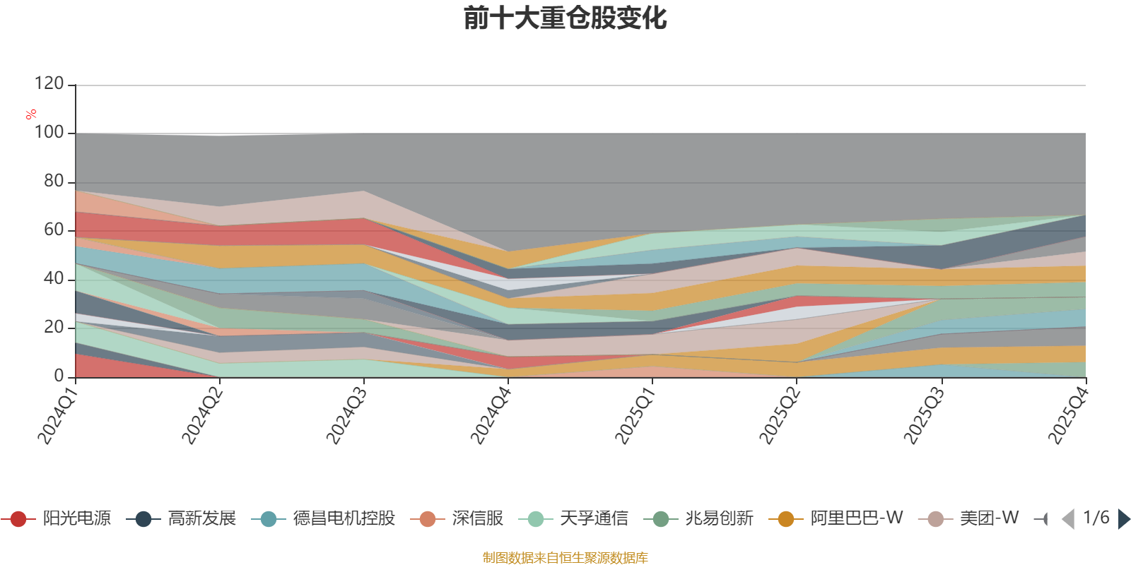 基金管理人在年报中表示,行业配置角度,2026 年主要关注以下三类主线机会:一、科技依旧是主线,国内外互联网大厂2026 年资本开支(Capex)将继续较大幅度增长,AI 基础设施投资相对确定性,海内外算力链保持高景气度; AI 应用服务进入商业化验证期。在 AI 大国竞争的背景下,中国自主可控的半导体产业迎来历史性机遇,相关产业链芯片设计、制造、设备、材料可能都蕴含巨大投资机会。二、现代化产业和产能出海是趋势,中国这么多年在电力设备、化工、机械、军工、创新药、汽车等领域,凭借巨大的本土市场、供应链一体化和人才优势,已经具备了全球竞争力;三、基于供需逻辑改善的涨价链条。过去一年光伏、化工等行业已先后受益,展望未来,或将延伸出更丰富投资线索。