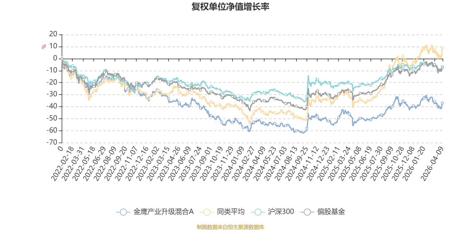 截至4月9日,金鹰产业升级混合A近三个月复权单位净值增长率为-3.28%,位于同类可比基金158/229;近半年复权单位净值增长率为-7.59%,位于同类可比基金190/229;近一年复权单位净值增长率为39.40%,位于同类可比基金175/229;近三年复权单位净值增长率为-2.43%,位于同类可比基金158/171。
