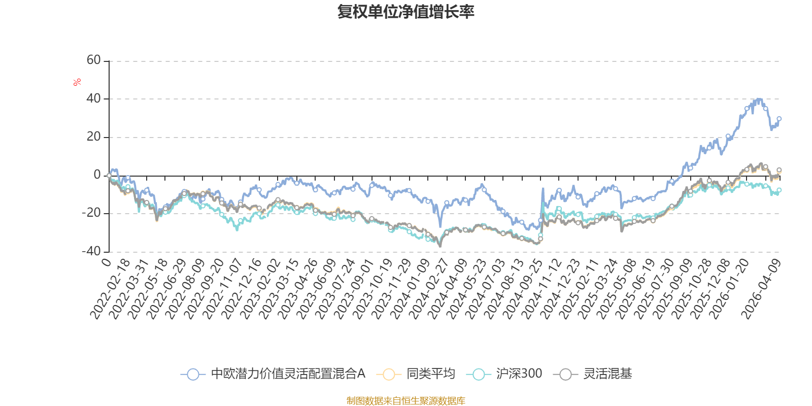 该基金属于灵活配置型基金。截至4月9日,单位净值为2.693元。基金经理是付倍佳,目前管理4只基金。其中,截至4月9日,中欧潜力价值灵活配置混合A近一年复权单位净值增长率最高,达53.92%;中欧恒利三年定期开放混合最低,为47.29%。