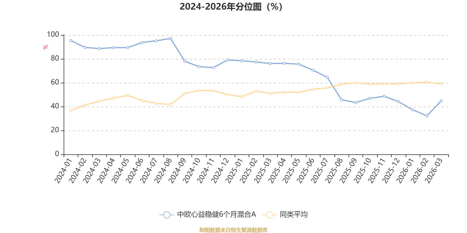 通过所选区间该基金净值增长率分位图,可以观察该基金与同类基金业绩比较情况。图为坐标原点到区间内某时点的净值增长率在同类基金中的分位数。