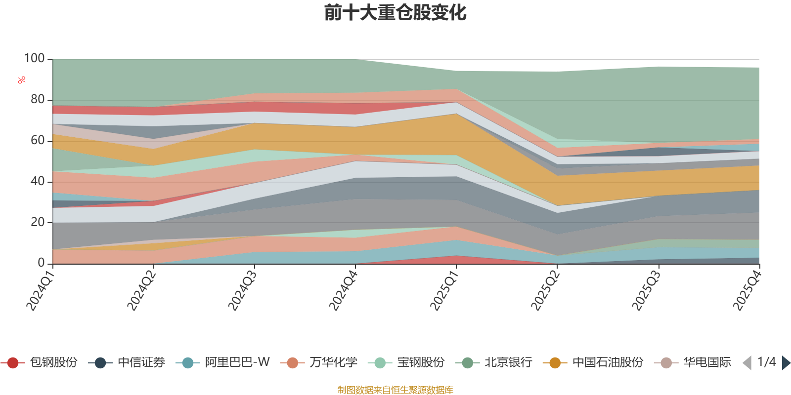 该基金持股集中度较高,近2年前十大重仓股集中度长期超过60%。截至2025年末,基金十大重仓股分别是宁德时代、腾讯控股、工商银行、阿里巴巴-W、北京银行、中国神华、紫金矿业、香港交易所、中信证券、建设银行。