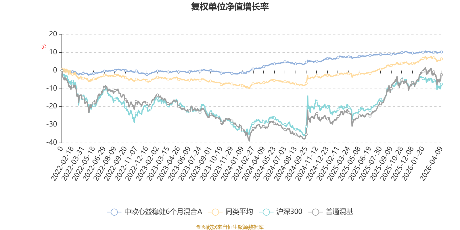 该基金属于偏债混合型基金。截至4月9日,单位净值为1.222元。基金经理是黄华,目前管理9只基金。其中,截至4月9日,中欧生益稳健一年混合A近一年复权单位净值增长率最高,达10.07%;中欧心益稳健6个月混合A最低,为3.19%。